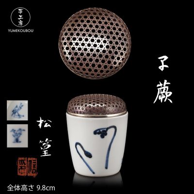 【夢工房】山澤 松篁 造 青華 蕨図 香炉 純銀 網火舎 共箱 火舎重量43g 銀純度99.84% AG-018