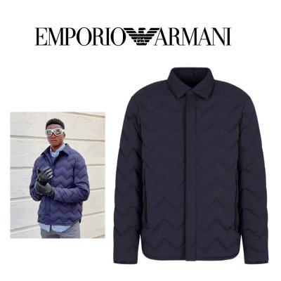 ●22万新品◆54=XXL◆EMPORIOアルマーニ ボタン留め シェブロンモチーフ キルティングナイロンダウンジャケット 紺ネイビー 1円