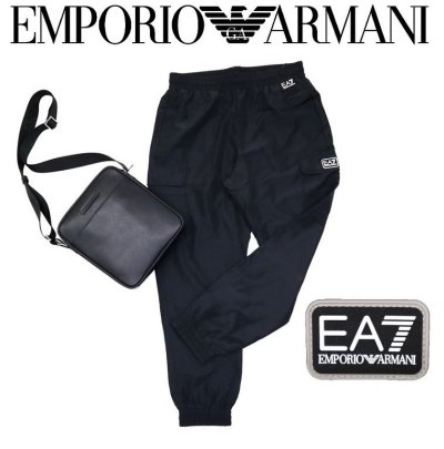 ●5万新品◆L◆EMPORIO ARMANI アルマーニEA7 ラバーロゴ ドローストリングナイロンパンツ黒 1円