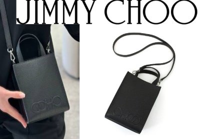 ●20万新品◆JIMMY CHOOジミーチュウ◆エンボスロゴ入りレザー 軽量クロスボディ・ミニトート2wayバッグ 黒 1円
