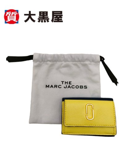 【大黒屋82】 MARC JACOBS マークジェイコブス ザ スナップショット ミニ 三つ折りウォレット イエロー×ライトグレー×ネイビー 財布
