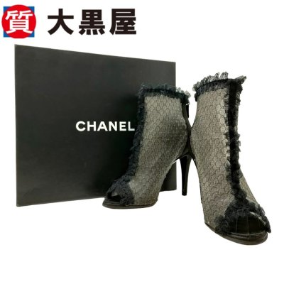 【大黒屋82】CHANEL シャネル G28049 ブーツ 38.5 ブラック レース ピンヒール シースルー 箱付き ハイヒール メッシュ オープントゥ 春夏
