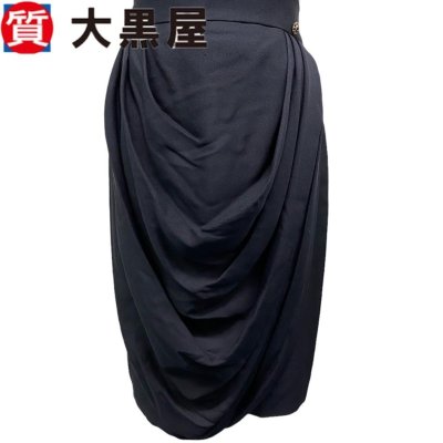 【大黒屋82】CHANEL シャネル タイトスカート ブラック 黒 シルク シンプル 42 レディース ドレープ ファッション レディース 返品交換不可