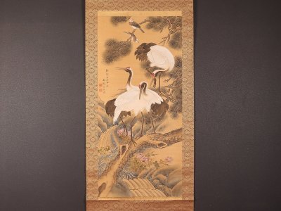 【模写】【伝来】kj1061〈沈南蘋〉老松花鳥三鶴図 二重箱 中国画 清代 南蘋派の祖 沈銓