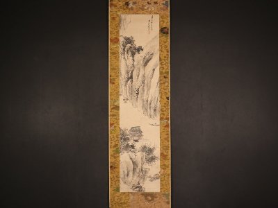 【模写】【伝来】am4786〈木村蒹葭堂〉山水図 極箱 大阪画壇 本草学者 江戸時代後期 木村巽斎
