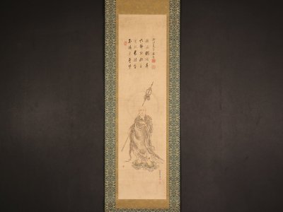 【模写】【伝来】am4788〈諸岳奕堂 池田九華〉蓮上地蔵菩薩画賛 曹洞宗の僧 総持寺独住一世 名古屋 画家 医師 江戸後期-明治時代 石川の人