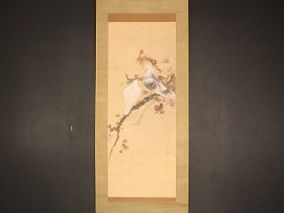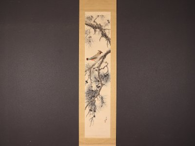 【模写】【伝来】am7848〈東原方僊〉松小禽図 共箱 竹内栖鳳師事 岡山の人