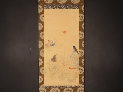 【模写】【伝来】kj1064〈菊池容斎〉那須与一扇の的図 近代歴史画の先駆 高田円乗師事 東京の人 平家物語絵 源平合戦 武者絵 弓の名手