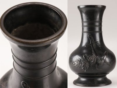 【流】古美術品 古銅錨文象嵌細工花入 高35cm LA053