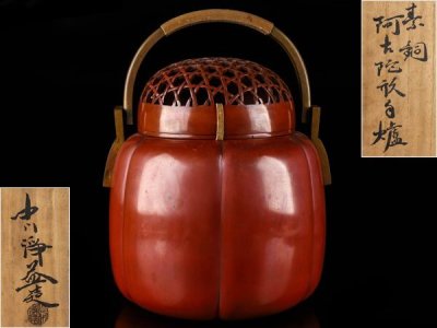 【流】中川浄益 素銅 阿古蛇型手炉 共箱 HD269