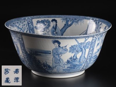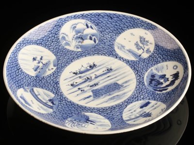 【流】伊万里 染付 近江八景図大皿 PB308