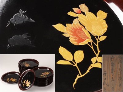 【流】能登輪島塗 蒔絵木皿 二十客 共箱 LC999