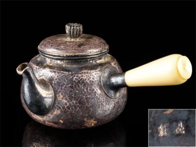 【流】煎茶道具 銀製 横手急須 重量195.5g HD191
