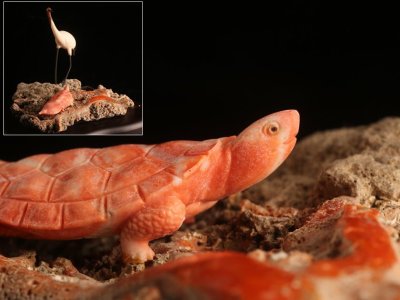 【流】古美術品 珊瑚鼈甲彫刻鶴亀置物 HD318