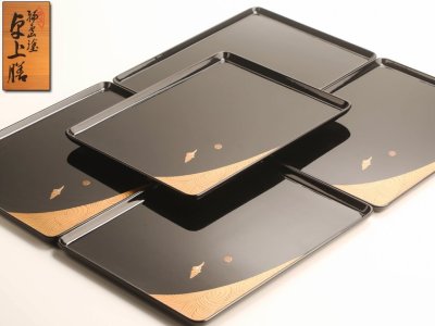 【流】能登輪島塗 貝蒔絵卓上膳五客 共箱 HD339