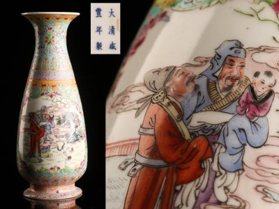 【流】中国美術 十錦人物図花瓶 高25cm UE120